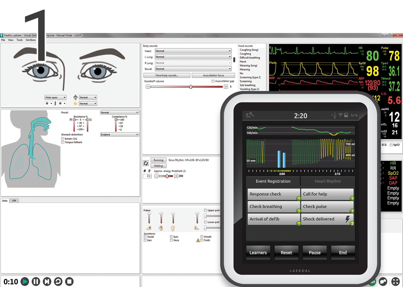 任何场景,无论是手动创建的还是在SimStore中购买的,都与SimCapture汇报会话兼容,并自动传输可过滤、可搜索和带注释的模拟器事件。此外,可以将LLEAP和SimPad格式化的文件(.scx)导入到SimCapture场景中,以进行集中的场景管理。SimCapture的Laerdal场景导入工具在单个步骤中捕获场景标题、摘要和所有学习目标。