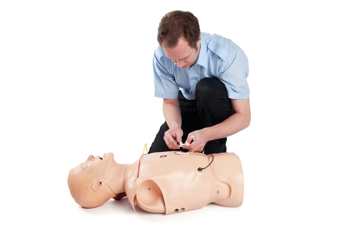 Treinamento com 12 derivações em um manequim portátil de tronco