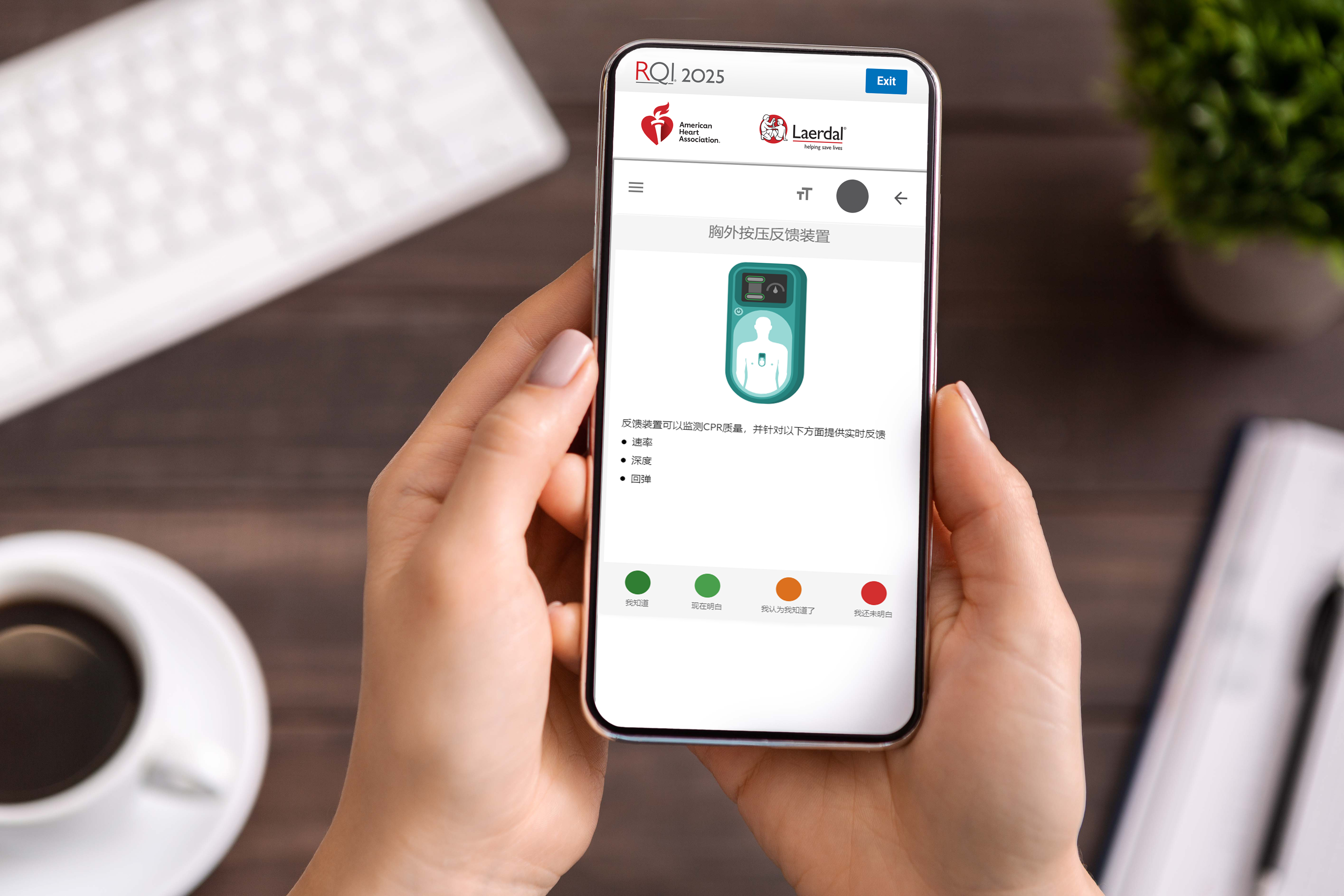 幸运的是,您无需每天花费几个小时来提高和保持您的熟练程度。经证明,简单而有规律地练习心肺复苏术——低剂量高频次的培训,有利于提高技能。美国心脏协会的复苏质量提升(RQI)课程是用于维持心肺复苏术技能的开创性新方法。< / p >
