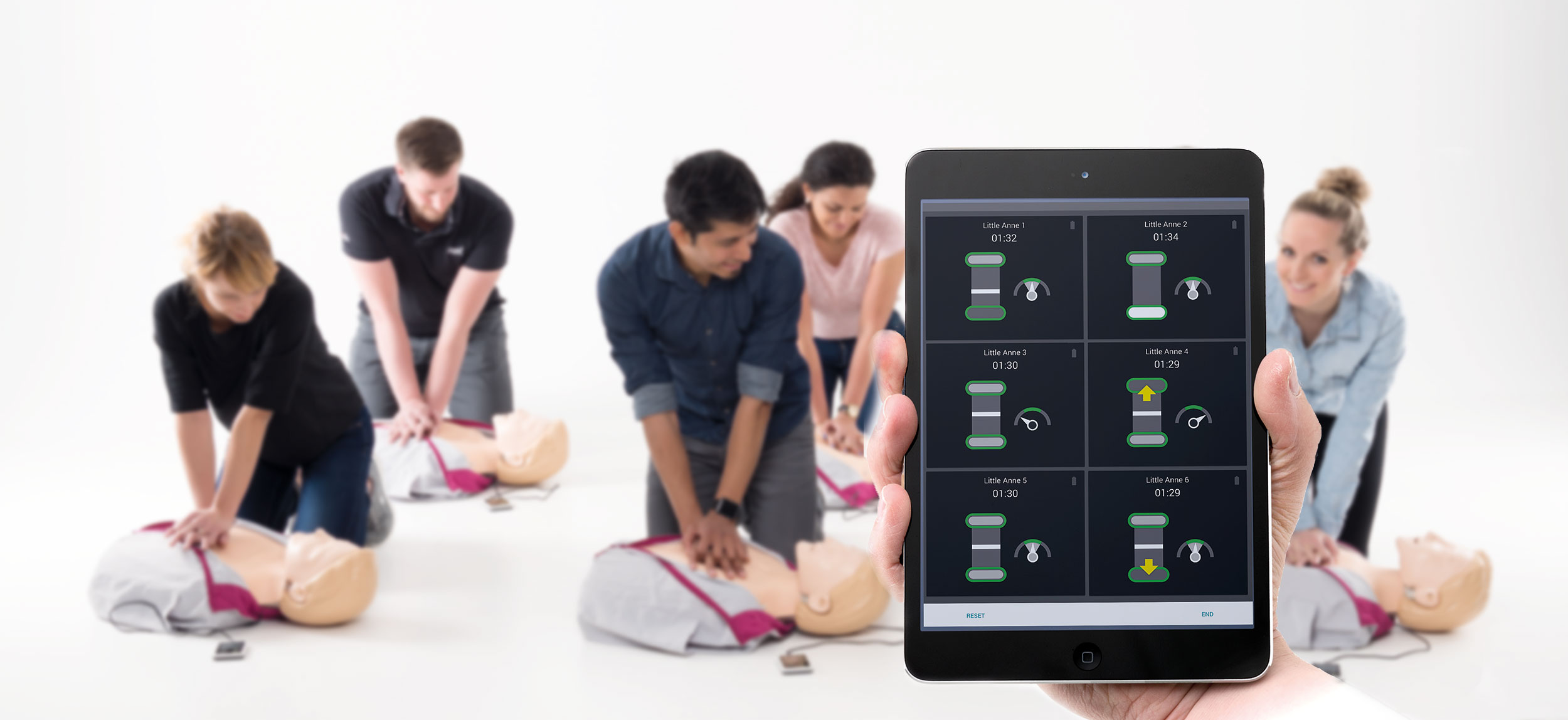 Aumente la eficiencia del aula con aplicaciones QCPR intuitivas. Permita que los instructores sean más prácticos y capaciten a más personas en menos tiempo con comentarios objetivos y guías en la aplicación.