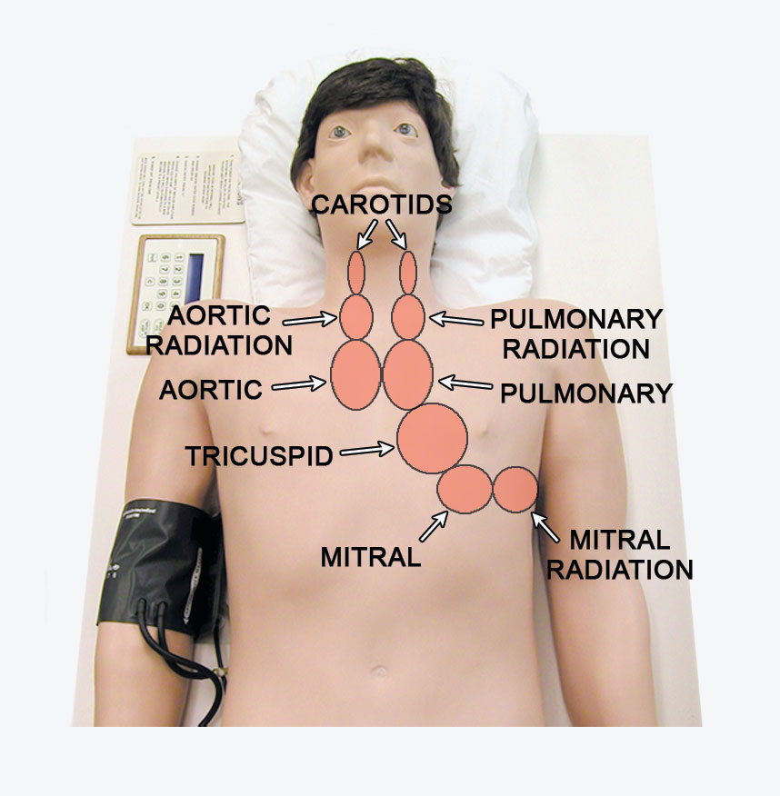 Sydämen auskultaatioalueet (yhteensä 9)