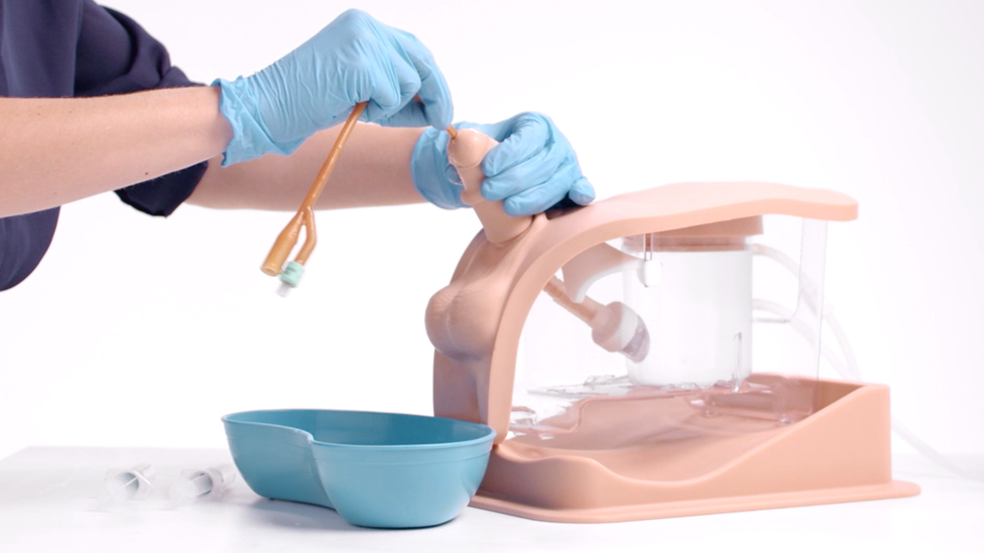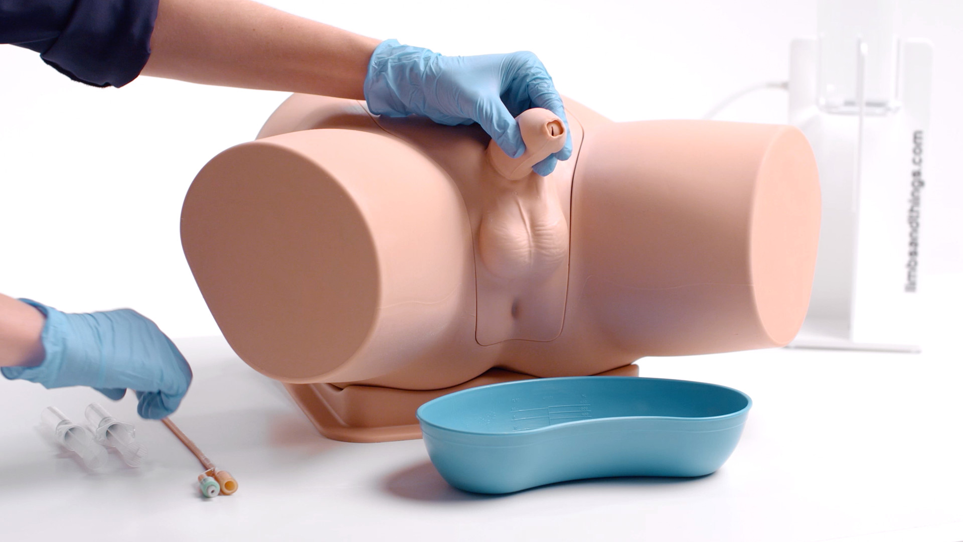 男性导尿培训师允许学员学习男性解剖学上的导尿技术。导尿管沿尿道进入膀胱的感觉与现实生活非常相似。