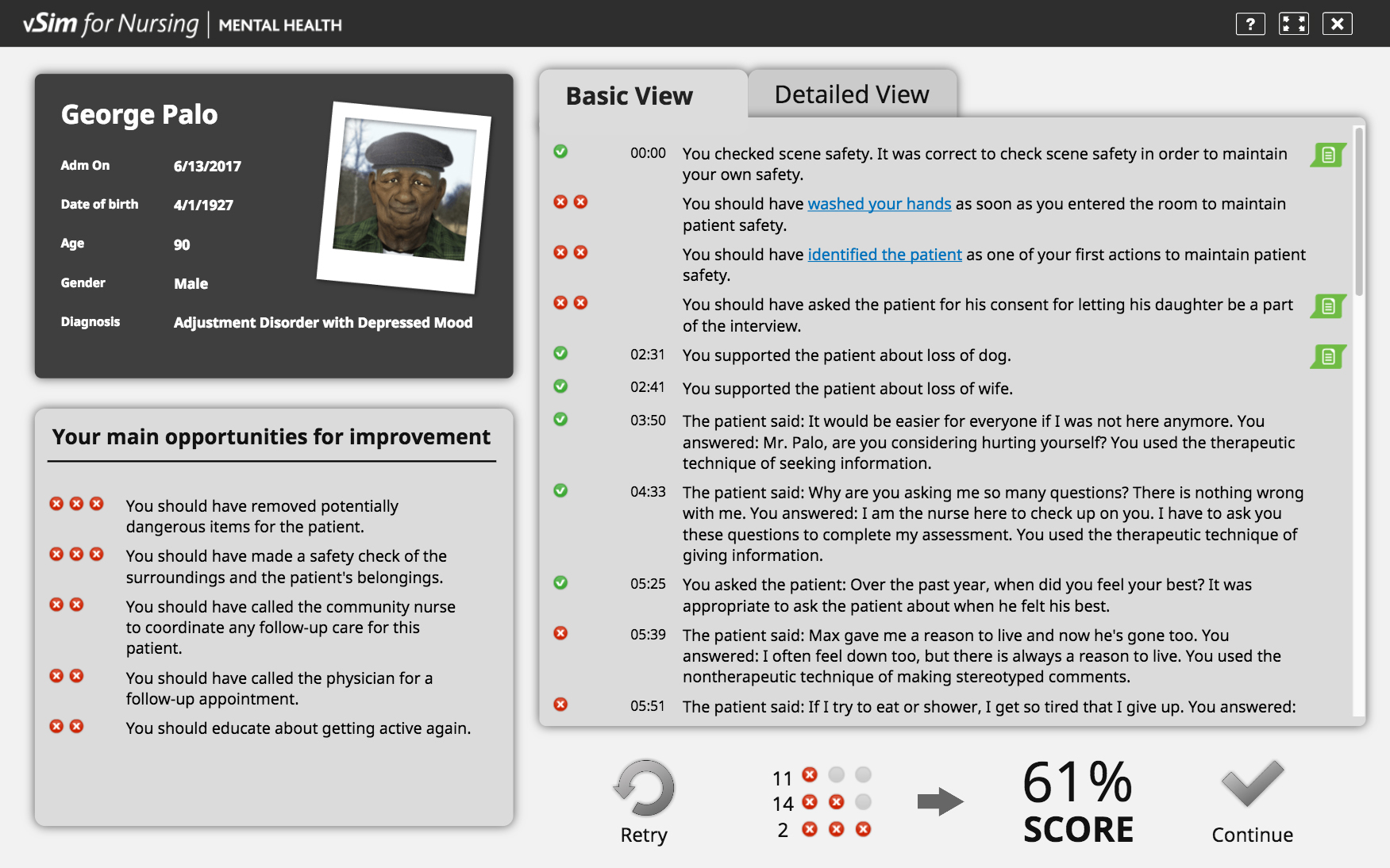 vSim为护理允许每个学生有一个不同的经验与病人。通过记录整个患者护理场景的交互,生成个性化的反馈日志,定制用户体验。每次学生重复场景时,他们将收到个人反馈日志,概述他们的临床推理选择。