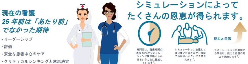 過去25年間で看護領域に生じた変化は、看護学生や看護師にとって、より実践的トレーニング(ハンズオン)や、包括的かつ実体験のように感じられるトレーニング経験の必要性を示しています。リーダーシップやコミュニケーションスキル、安全な医療のためのトレーニングといった点が一層重要視されていく中、質の高いシミュレーショントレーニングを体験することは、看護師の方々にとって大変有効です。